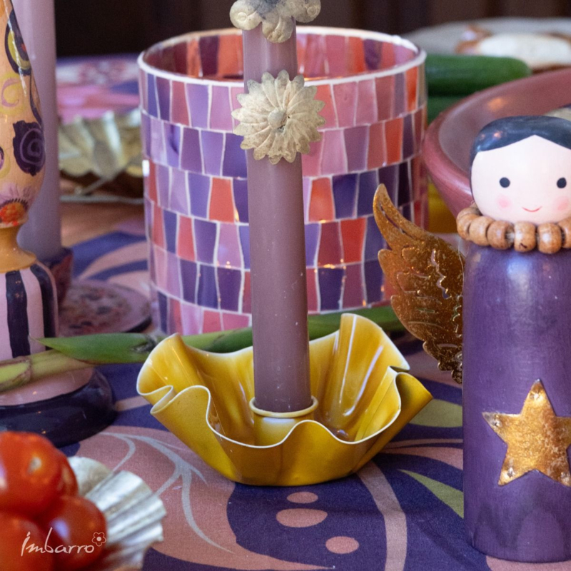Deze kleine kandelaar valt op door de unieke, gevouwen look. Het speelse ontwerp geeft een huiselijke en warme sfeer, ideaal om meerdere te combineren voor extra gezelligheid.