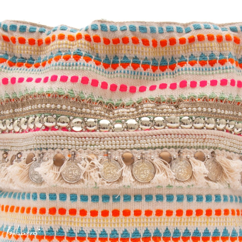 De ultieme Happy Hippy vibe: de boho bucket bag. Met coins, franjes, neonstrepen, borduursels, tassels en glitterdetails, hier gebeurt alles. Gemaakt voor dansen, reizen, lachen, praten tot laat en gewoon het leven te vieren. Cross-sell: combineer met elke shopper of pouch uit de Viva la Bag-lijn voor de complete festival-set. Met deze bucket bag is elke dag een feestje.